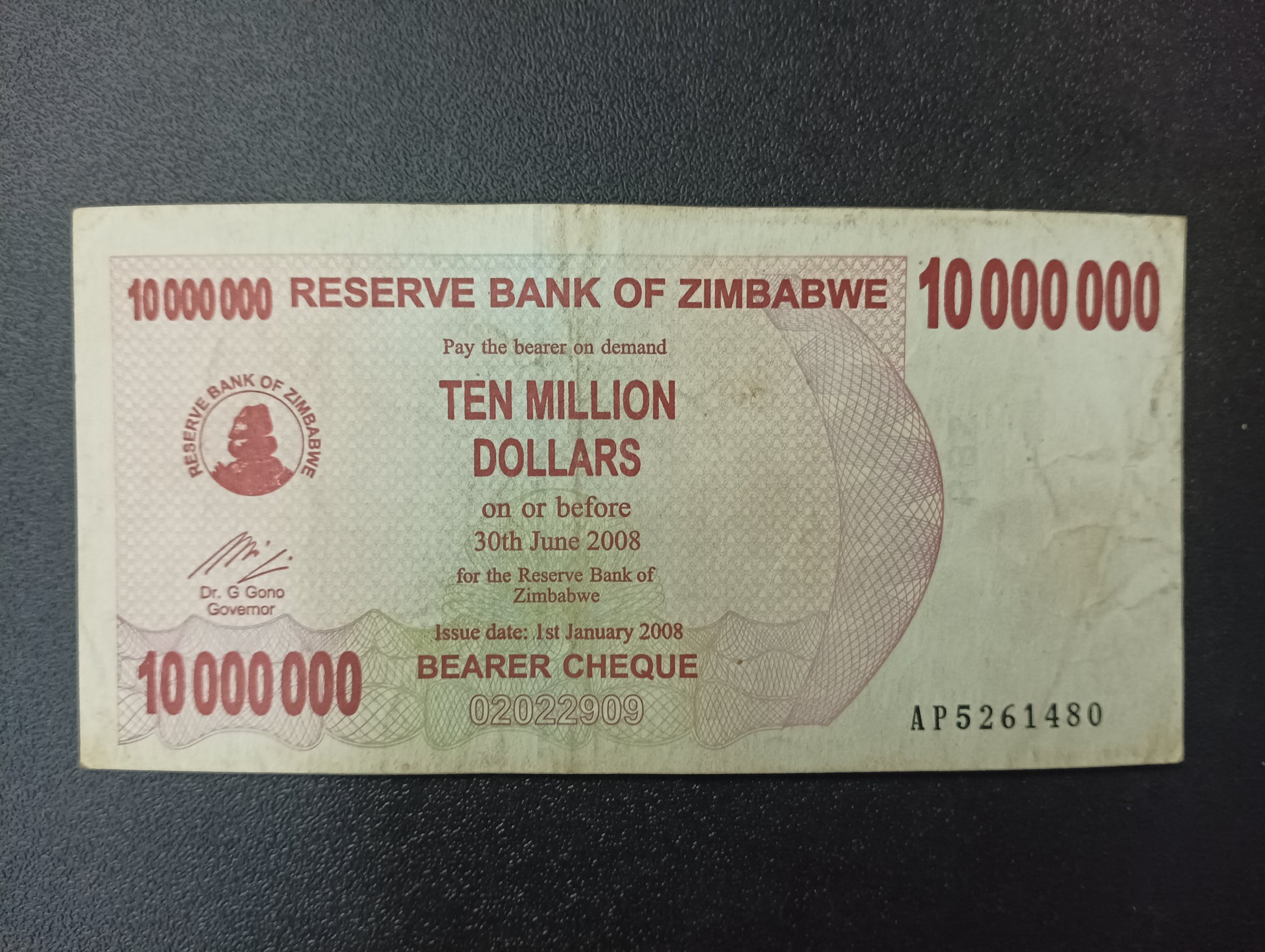 10 Million Dollars 2008 (Bearer Cheque) - Zimbabwe