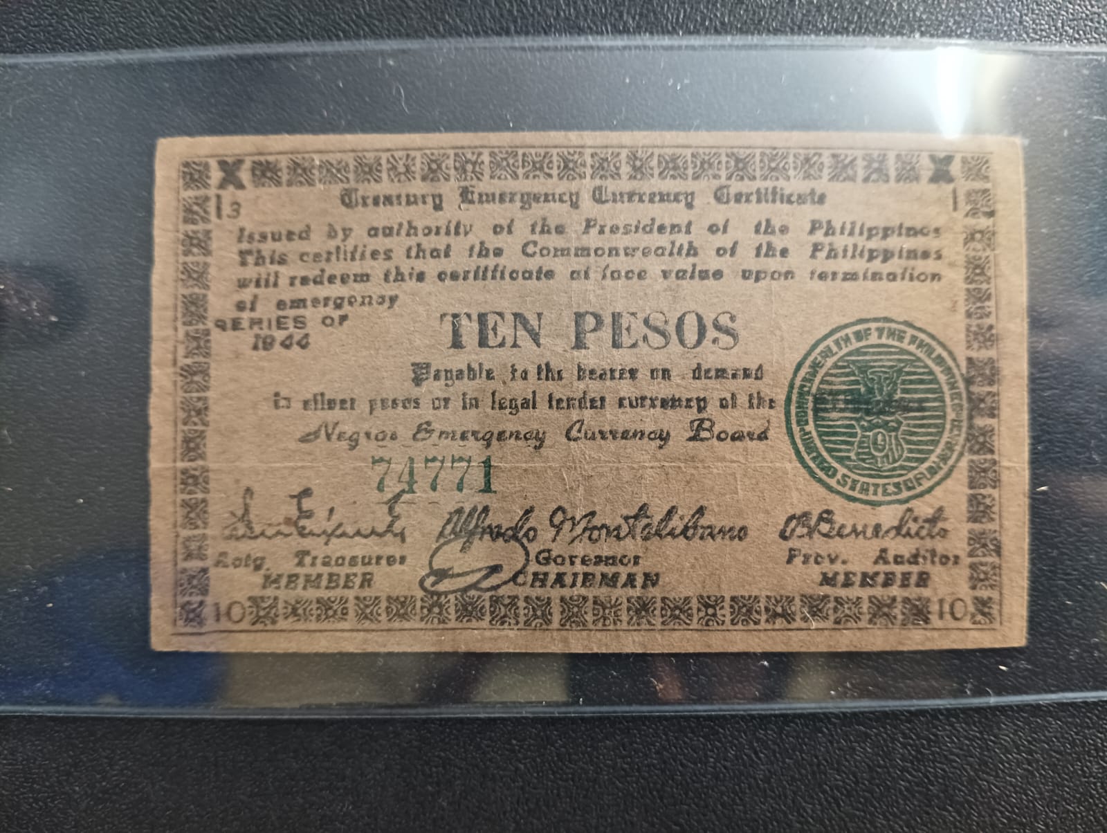 10 Pesos 1944 (TREASURY EMERGENCY CURRENCY CERTIFICATE) - Philippines Province of Negros Oriental (Island of Negros)) - (Ref : 121204)