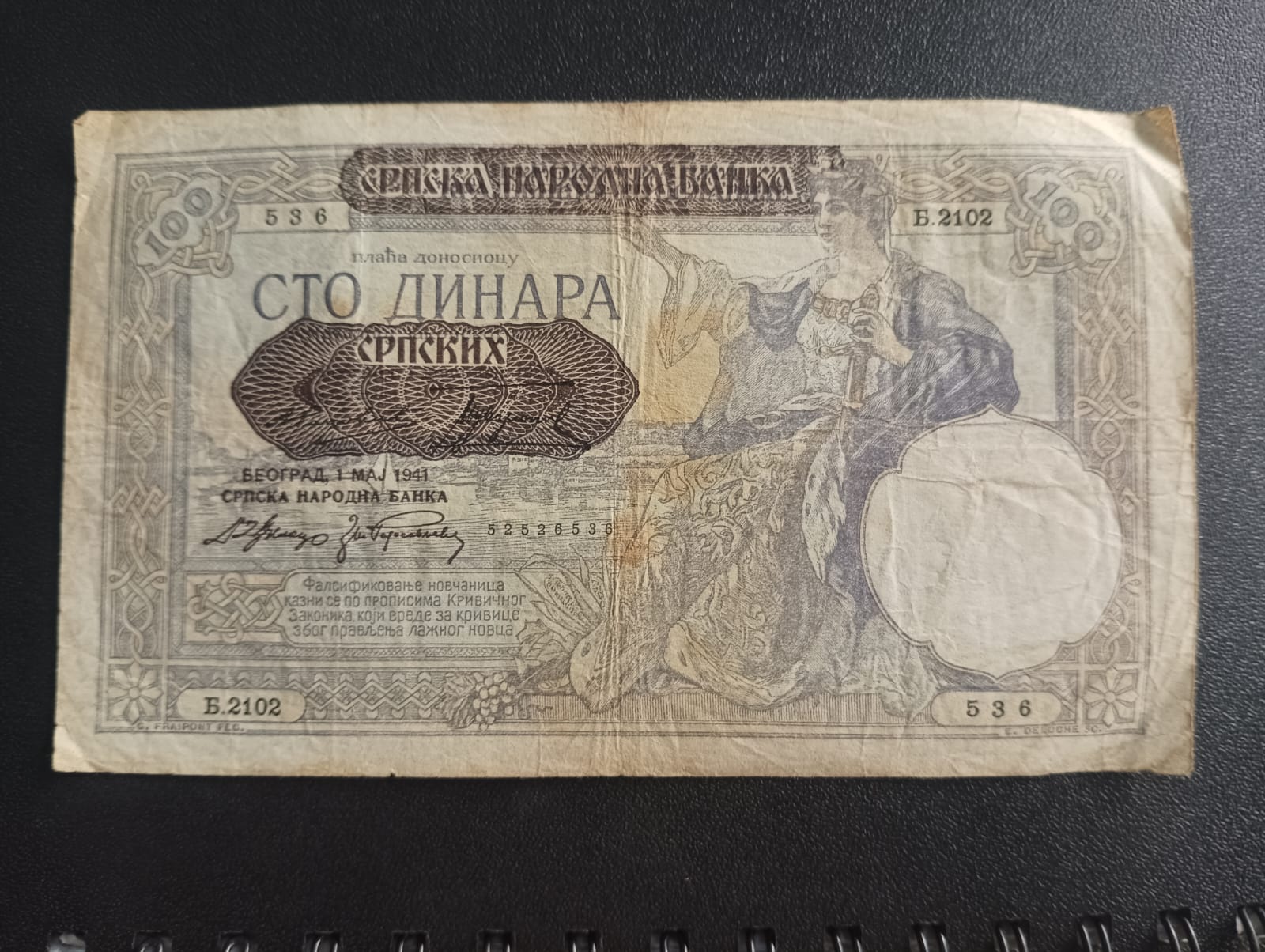 100 Dinara 1941 (Overprint Provisional Issue) - Serbia (Ref : AUC0812)